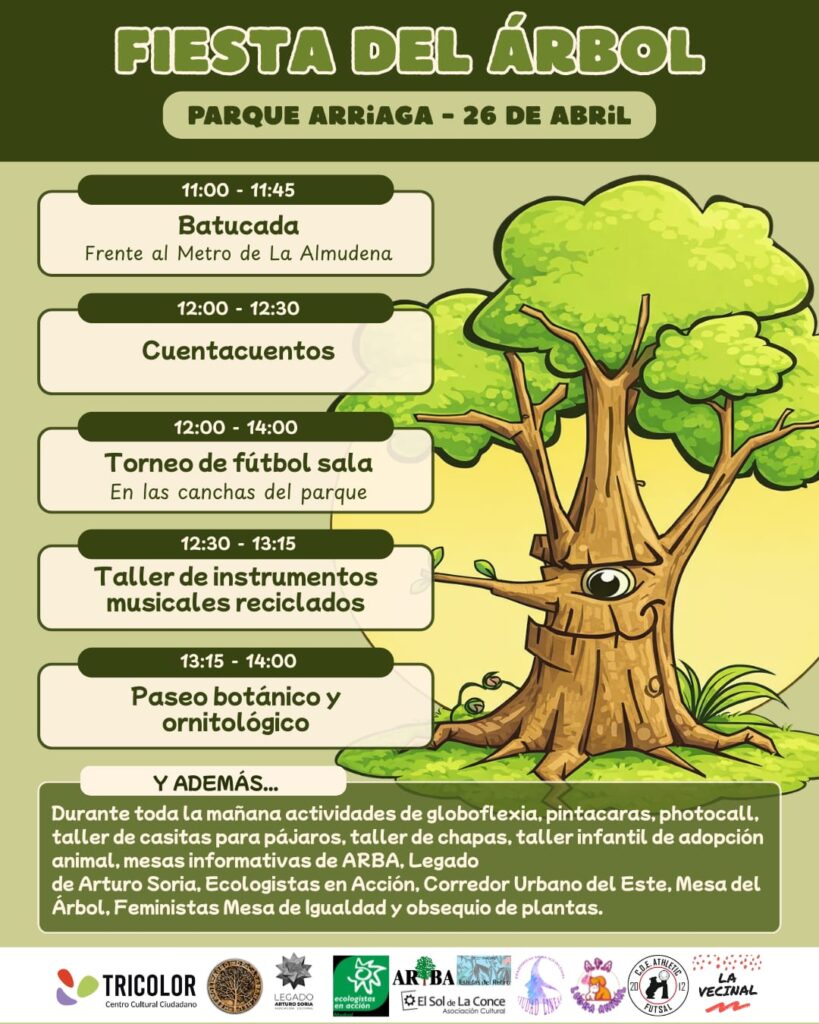 El distrito madrileño de Ciudad Lineal volverá a situar el debate sobre el modelo urbano en el centro de la agenda vecinal con la celebración, este domingo 26 de abril, de la I Fiesta del Árbol del Parque Arriaga. La iniciativa, organizada por colectivos ciudadanos, combina actividades lúdicas con una clara reivindicación: avanzar hacia “barrios verdes” y una ciudad más saludable.