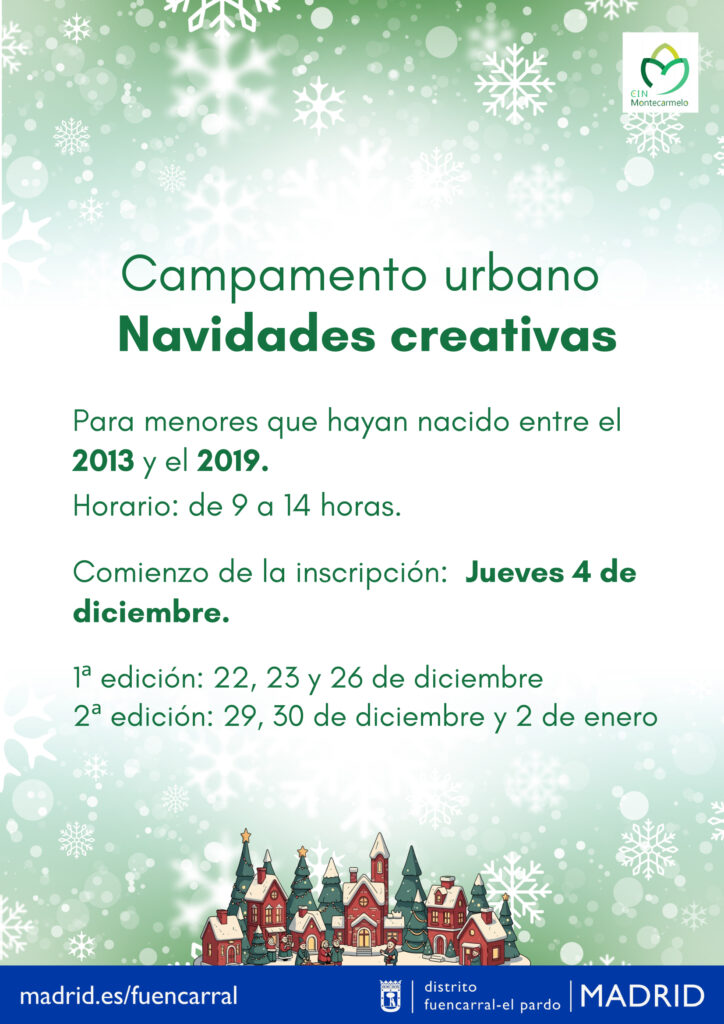 El Centro de Interpretación de la Naturaleza Montecarmelo (CIN Montecarmelo), en Fuencarral‑El Pardo, lanza hoy el formulario para apuntar a niños de 6 a 12 años al campamento gratuito “Navidades creativas”, previsto para los días no lectivos de diciembre y enero.