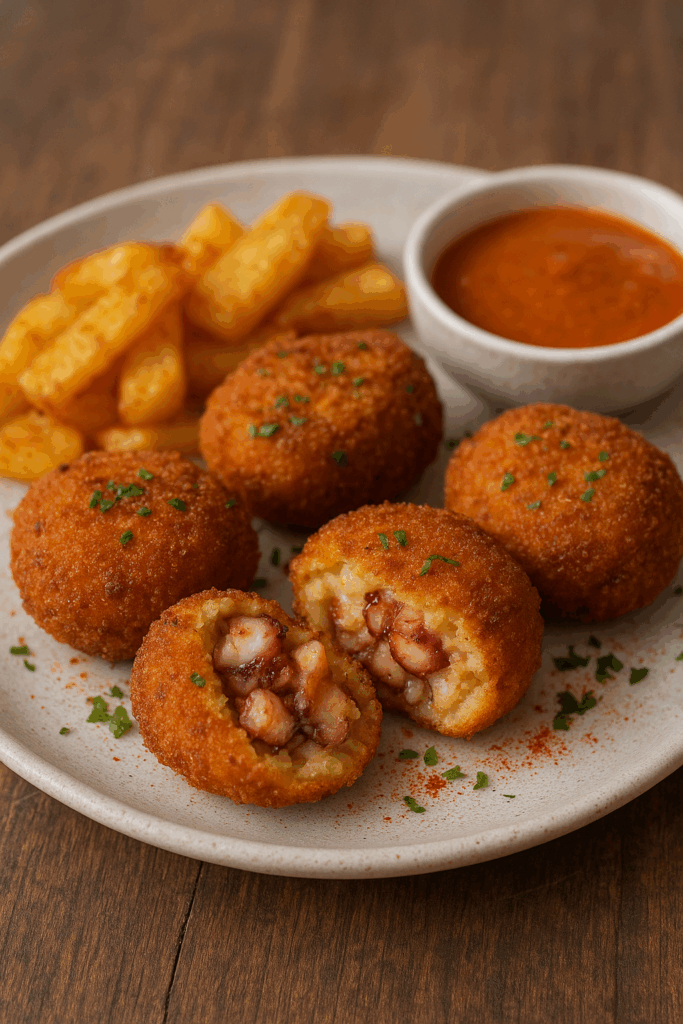 Croquetas caseras de pulpo a la gallega.